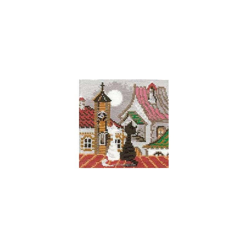 Chat noir et blanc sur le toit broderie de RIOLIS au point de croix