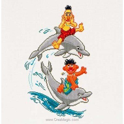 Sesame street dolphins sur aida kit point de croix - Thea Gouverneur