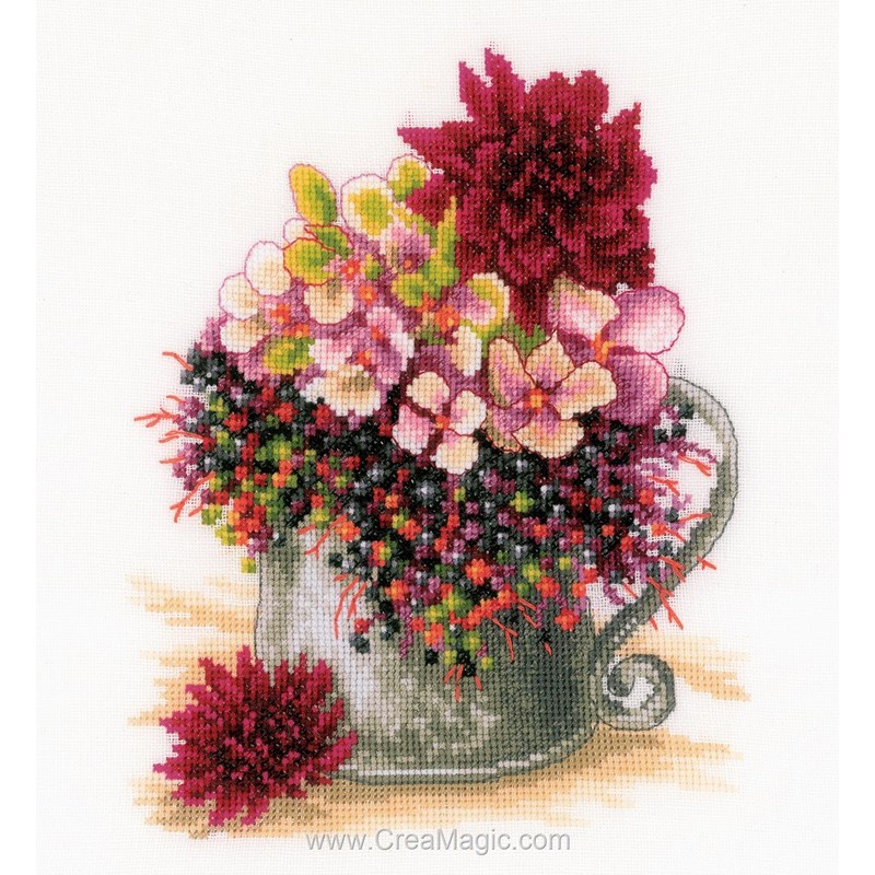 Kit point de croix de Lanarte à broder bouquet de fleurs roses