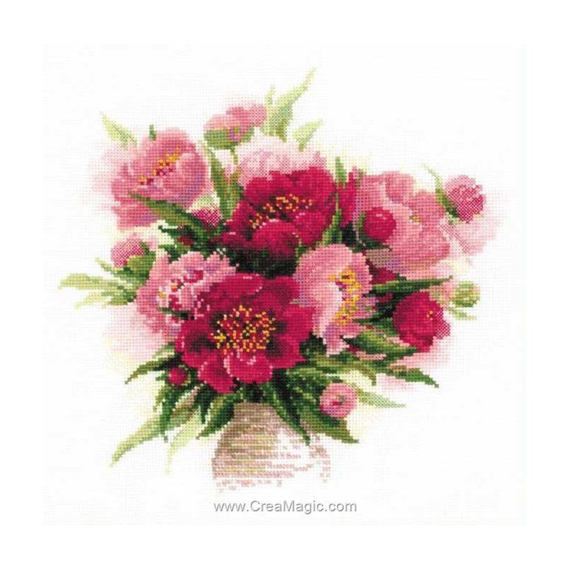 Pivoines dans un vase broderie en point compté - RIOLIS