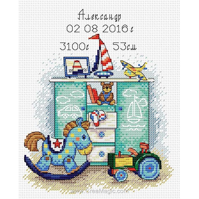 Tableau naissance bébé à broder MP Studia la commode aux jouets