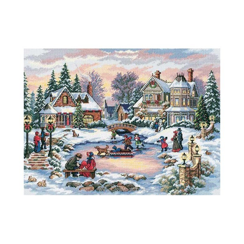 Dimensions Old point de croix à broder le village sous la neige