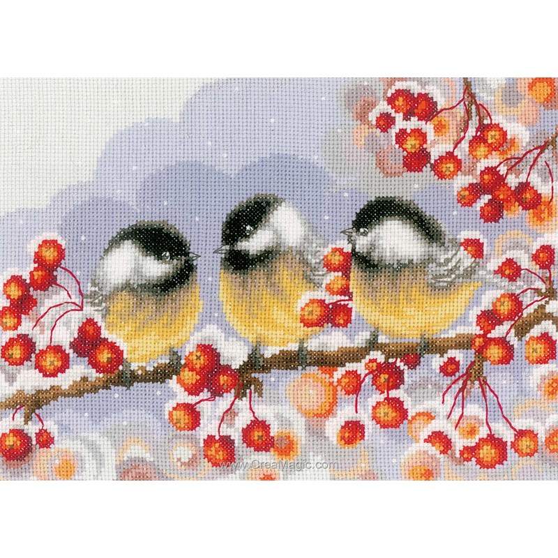 Broderie Noel - 3 mésanges parmi les baies - Vervaco