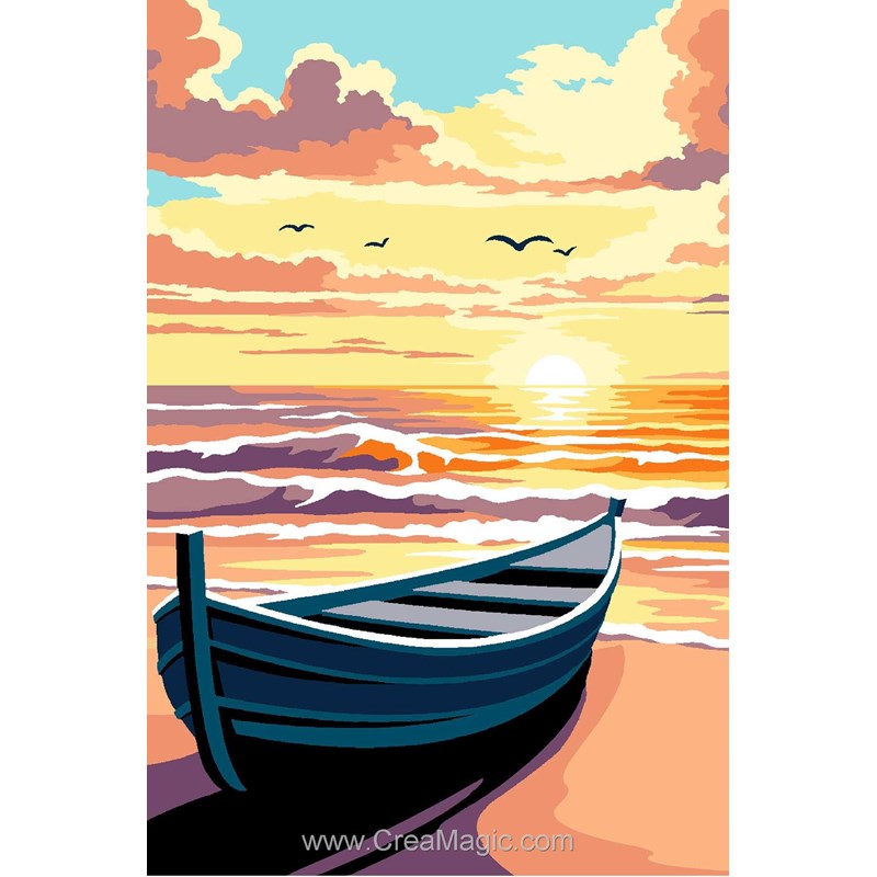 Une fois terminé, ce canevas devient une pièce décorative pleine de caractère. Les reflets du soleil sur l’eau, la douceur des vagues et la présence paisible de la barque composent un ensemble harmonieux, parfait pour apporter à votre intérieur une note marine chaleureuse et lumineuse.