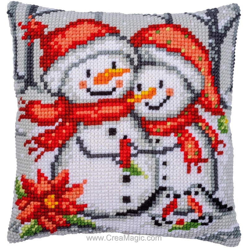 Coussin Noël au point de croix - Bonhommes de neige - Vervaco