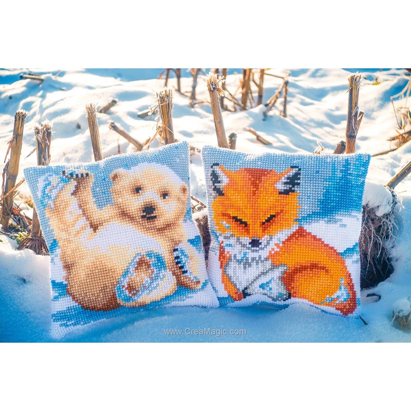 Coussins Animaux sauvages au point de croix - Petit renard - Vervaco