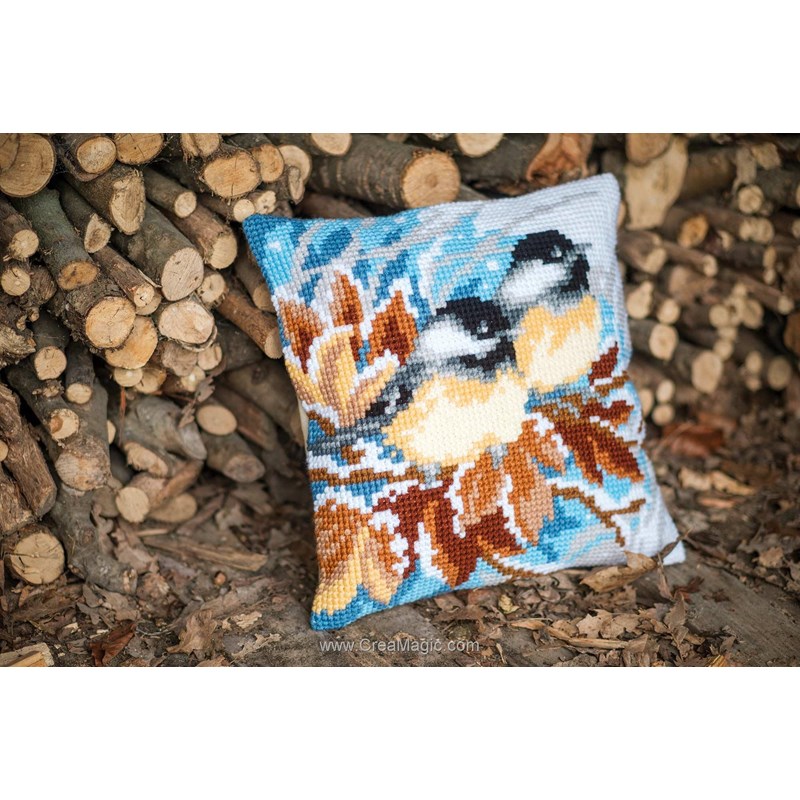 Coussins oiseaux au point de croix - Mésanges en hiver - Vervaco