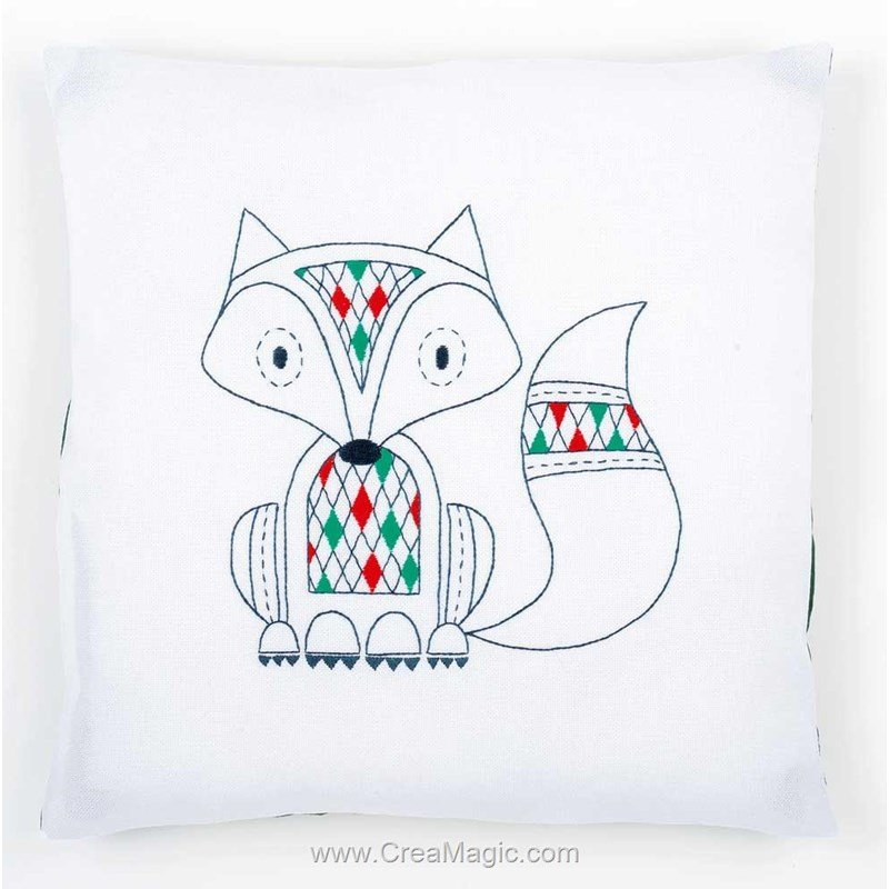 Kit coussin renard moderne à broder en broderie traditionnelle Vervaco