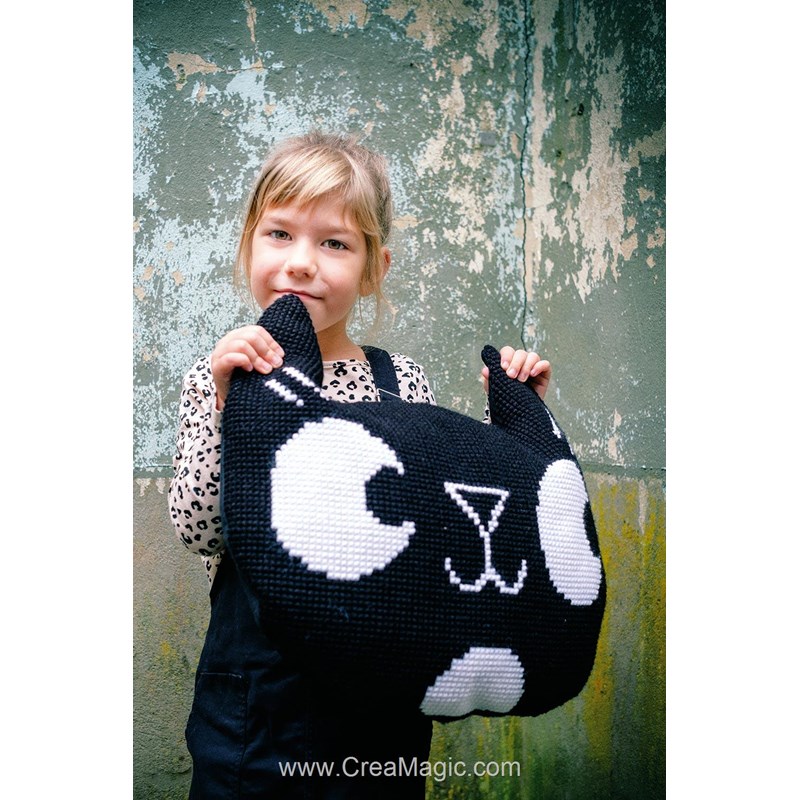 Kit coussin au point de croix chat noir - evam - avec dos - Vervaco