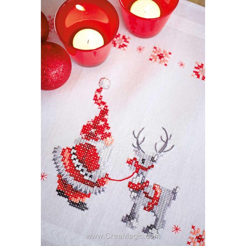 Chemin de table au point de croix imprimé lutins de noël à broder en broderie traditionnelle de Vervaco