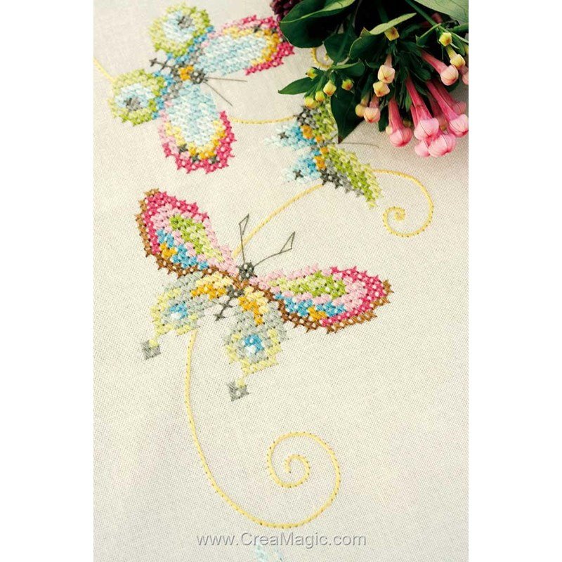 Kit surnappe papillions coloris en broderie traditionnelle Vervaco