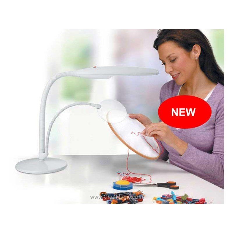 La lampe sur table la plus populaire de notre gamme a été redessinée. Désormais, elle a une tête pivotante ‘Easy-twist’ 320°, très utile si vous souhaitez orienter le tube de 18w Daylight™ sur un point précis de votre travail. De plus, elle est maintenant livrée avec un transformateur électronique (aucun scintillement) pour une qualité de lumière irréprochable et bien entendu une loupe sur bras de 13cm de diamètre et de puissance 1.75X pour tous vos travaux de précision.