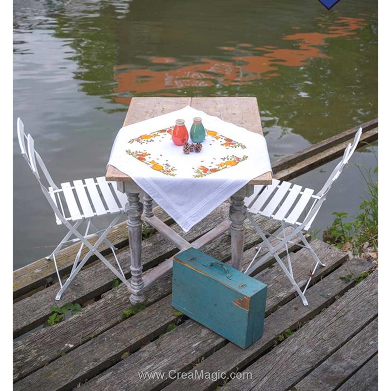 Kit Nappe Broderie Point de Croix imprimée - Animaux d'automne - Vervaco