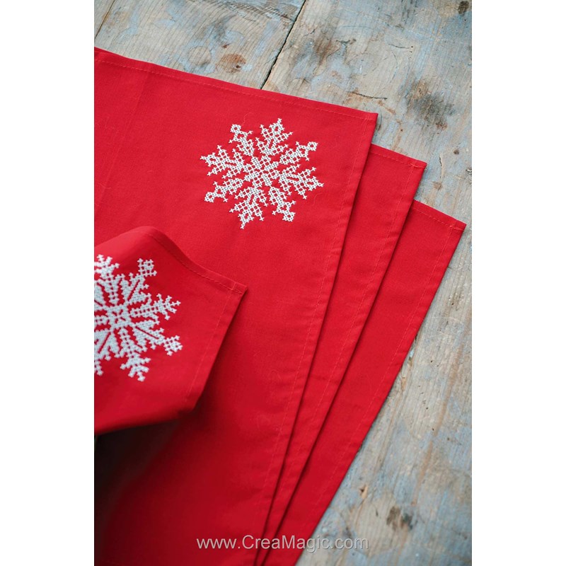 Serviette Broderie Traditionnelle - Snowcrystal et ronds de serviettes - lot de 4 - Vervaco