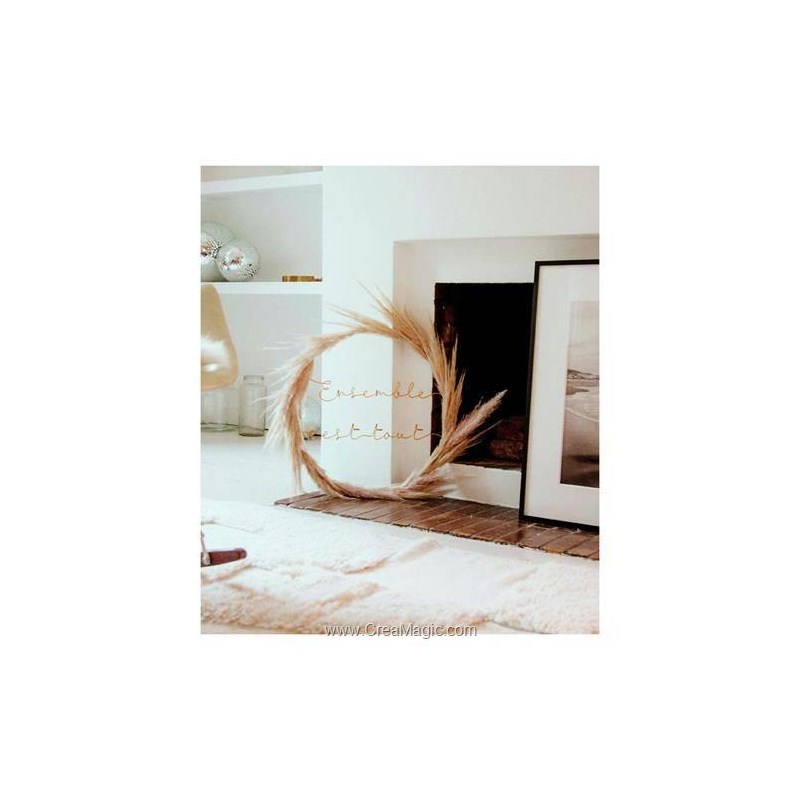 - Carte en filaire doré « Bisou » - Couronne XXL avec des herbes de la Pampa « Ensemble c’est tout »