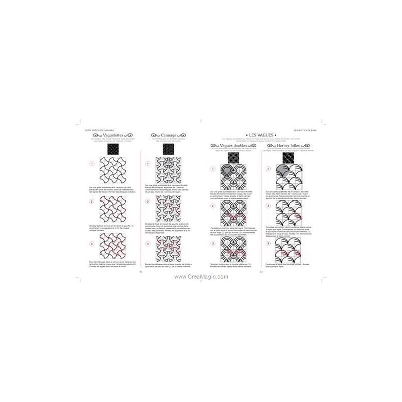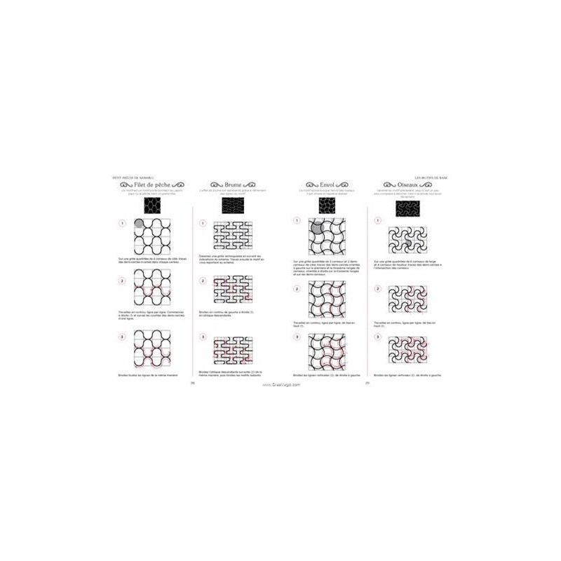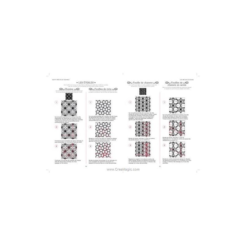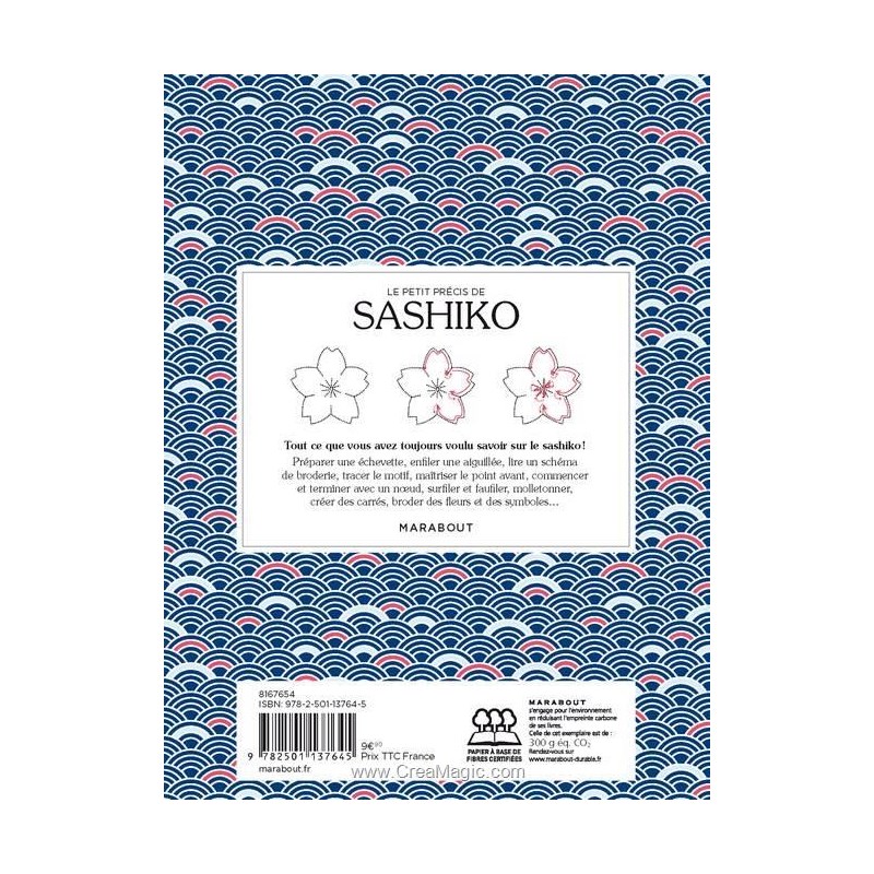 Sashiko : Technique de broderie traditionnelle japonaise au point avant brodé en blanc sur un tissu de coton ou de lin bleu marine qui se développe durant l’ère Edo (1603-1868).Le sashiko est utilisé pour renforcer les vêtements de travail ainsi que les vestes des pompiers privés de Tokyo. Pour les paysans japonais, les pièces obtenues sont alors plus résistantes et isolent mieux du froid, et le sashiko permet d’utiliser plus longtemps les mêmes vêtements en les reprisant ou en les assemblant dans un souci d’économie. La broderie quotidienne devient un art !Une approche très pédagogique pour découvrir toutes les techniques de base du sashiko et les différents motifs… expliqués pas à pas.Un cours complet simple et accessible aux débutantes comme aux plus expérimentées.Des explications claires étape par étape pour maîtriser tous les points de base et les différentes techniques.
