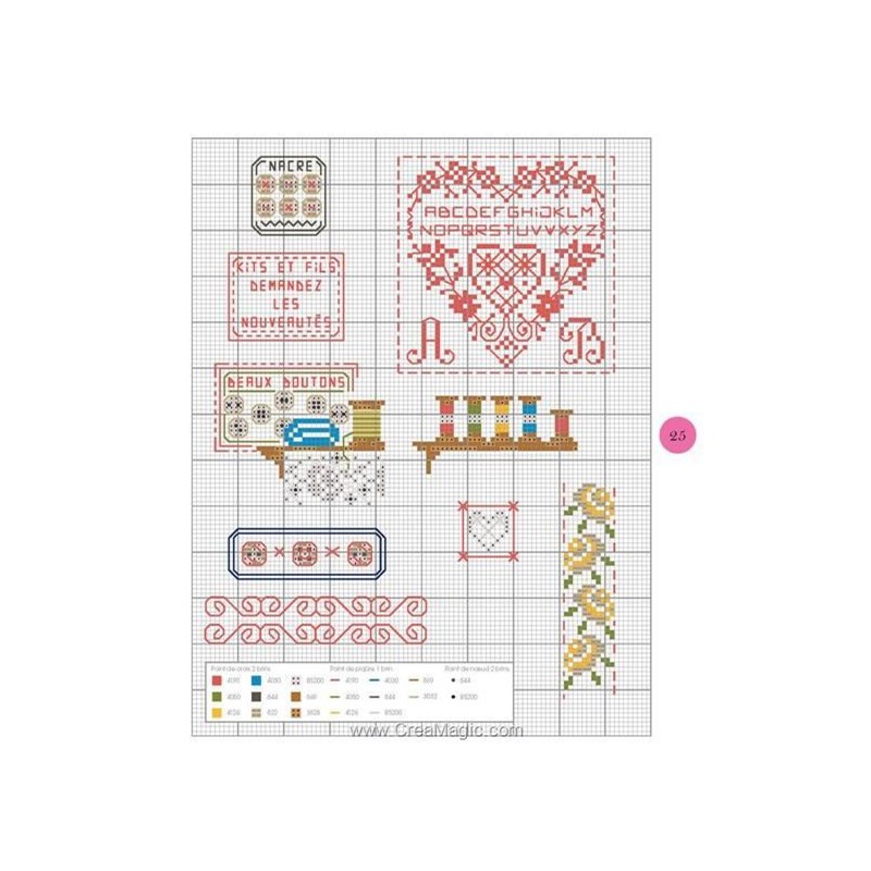 C’est autour des ouvrages de dames que s’articule ce livre, avec des dizaines de motifs au point de croix avec des grilles représentant des dés à coudre, des boutons, des fils, des tissus, des rubans, des ciseaux à broder…Les créatrices pourront retrouver des idées pour créer des rangements pour leurs fournitures préférées avec 17 créations essentielles pour les passionnées d’art du fil, mêlant petite couture et point de croix : pique-épingle, range-bobine, range-aiguille, étiquettes, cartonnettes, carton à dessin, kit de la brodeuse, trousse…Un univers dans l’air du temps : les sites de merceries en ligne se multiplient, gros succès des fournitures (tissus, laine, aiguilles, crochet…).Une grande variété dans les motifs et les couleurs : des frises, des petits motifs ou des plus grands…2 abécédairesDes créations vraiment utiles aux brodeuses : biscornu, épingle, range rubans… faciles à confectionner.Auteur : Rethoret-melin Marie-anne Photographe : Siraudeau Sebastien BROCHE Format : 202 X 236 mmNombre de pages : 62Prix public en € : 13,90