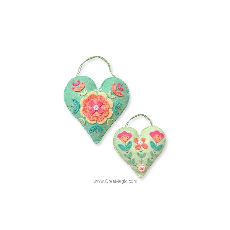 Kit feutrine 2 PETITS COEURS FOLK ART de la marque The Cinnamon Patch