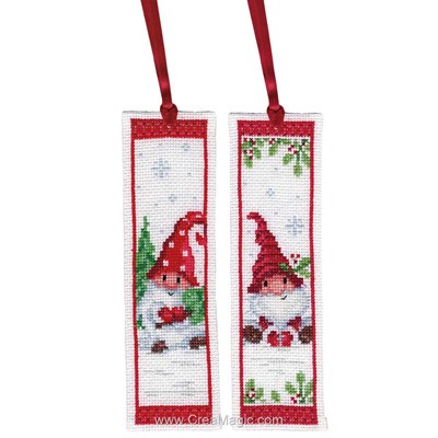 Modèle de marque page les gnömes de noël - lot de 2 à réaliser soi-même à la main en broderie au point de croix compté PN-0189703 - Vervaco :