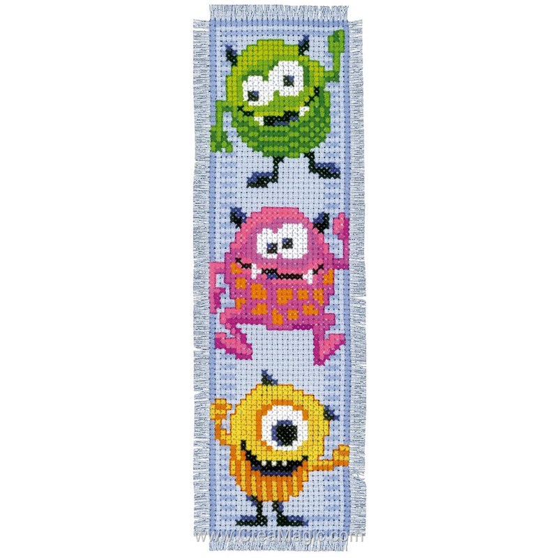 Modèle marque-page monstres en couleur - lot de 2 à faire à la main au point de croix PN-0150400 - Vervaco :