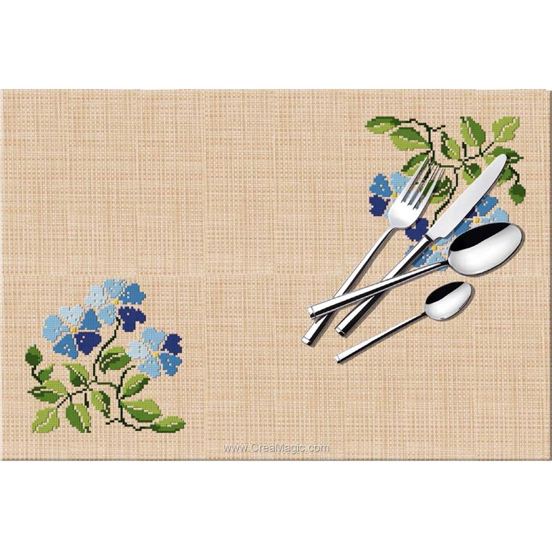 Set de table à broder au point de croix compté fleurs bleues - Luc Création