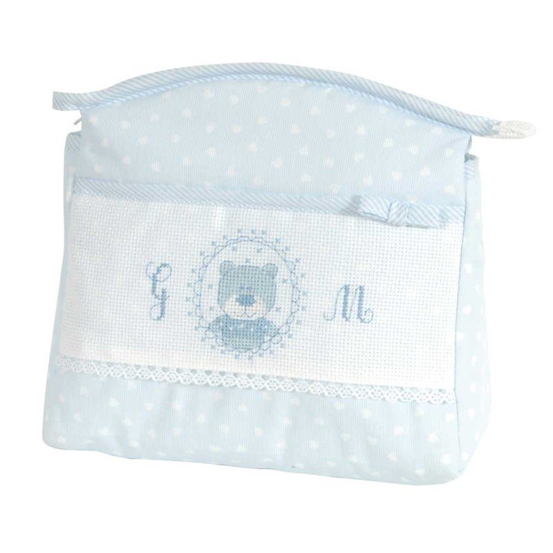 Trousse de toilette pour enfant à broder mon premier bonheur - bleu RS2435-BLEU à réaliser soi-même au point de croix compte de DMC :