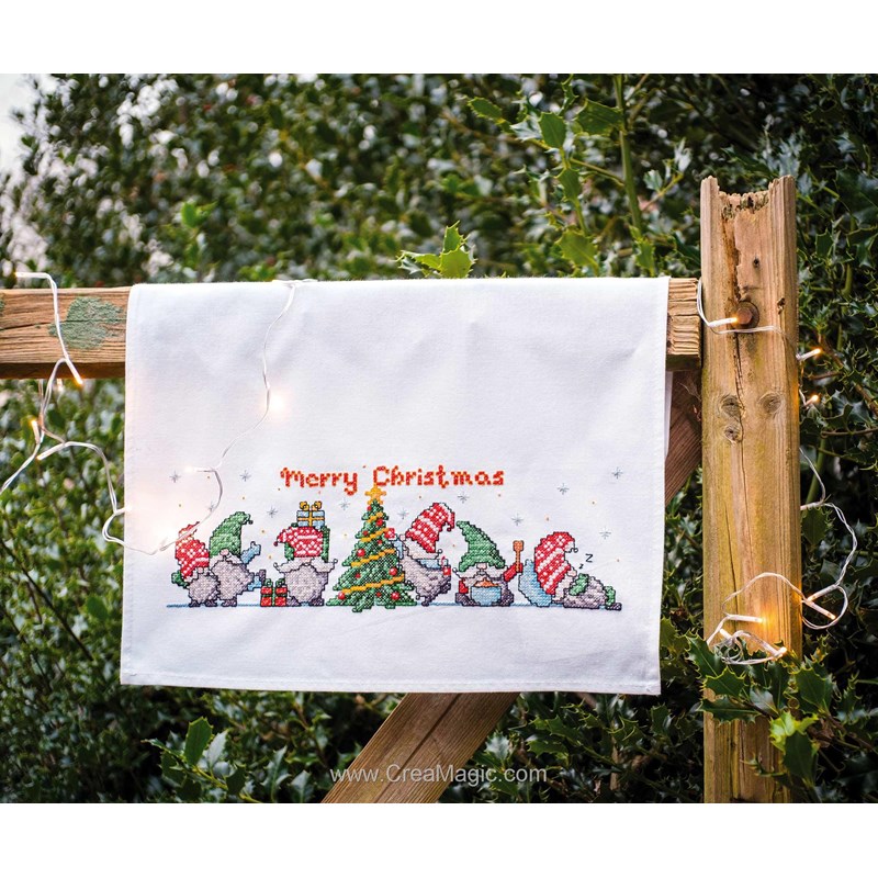 Torchon Broderie Traditionnelle - Gnome avec sapin de noël - Vervaco